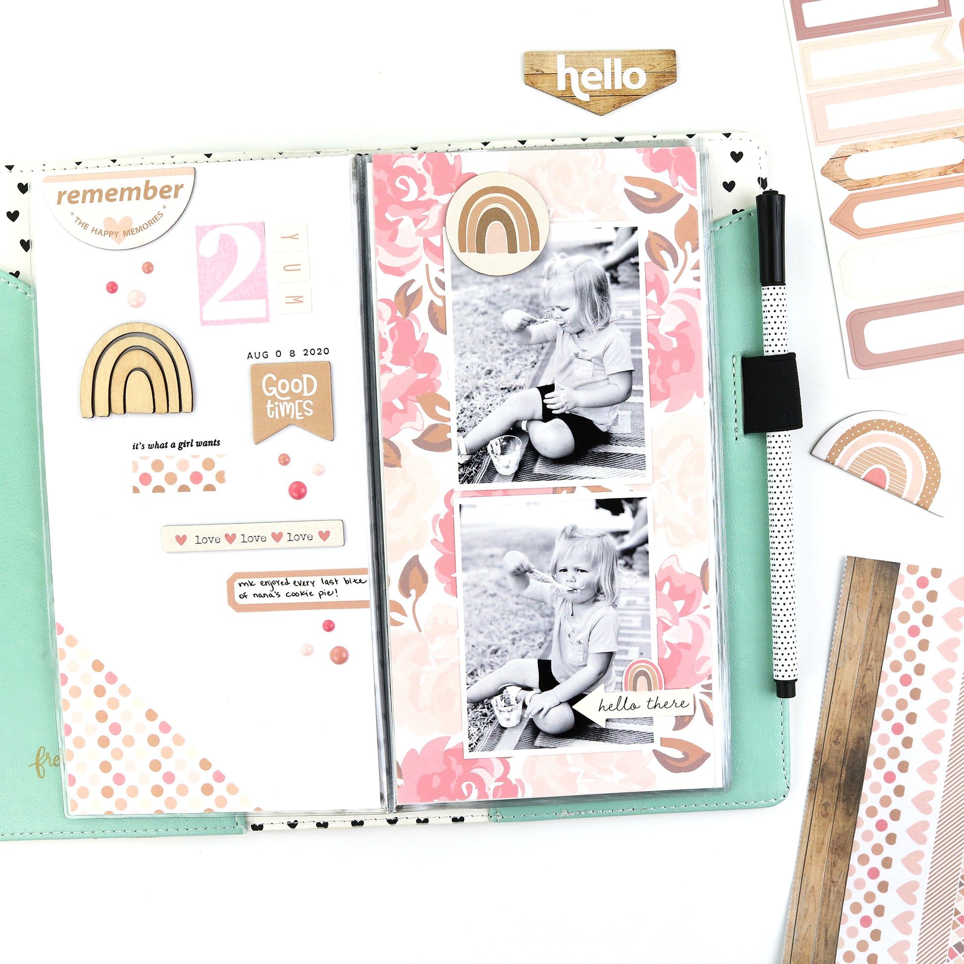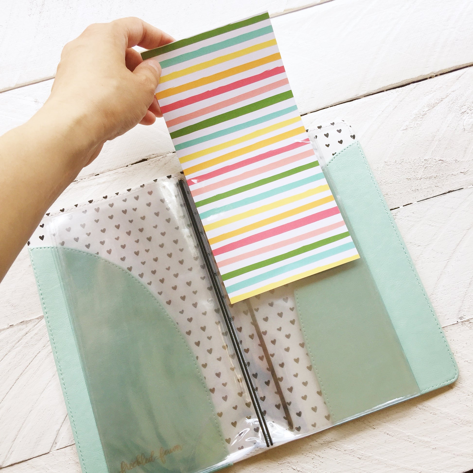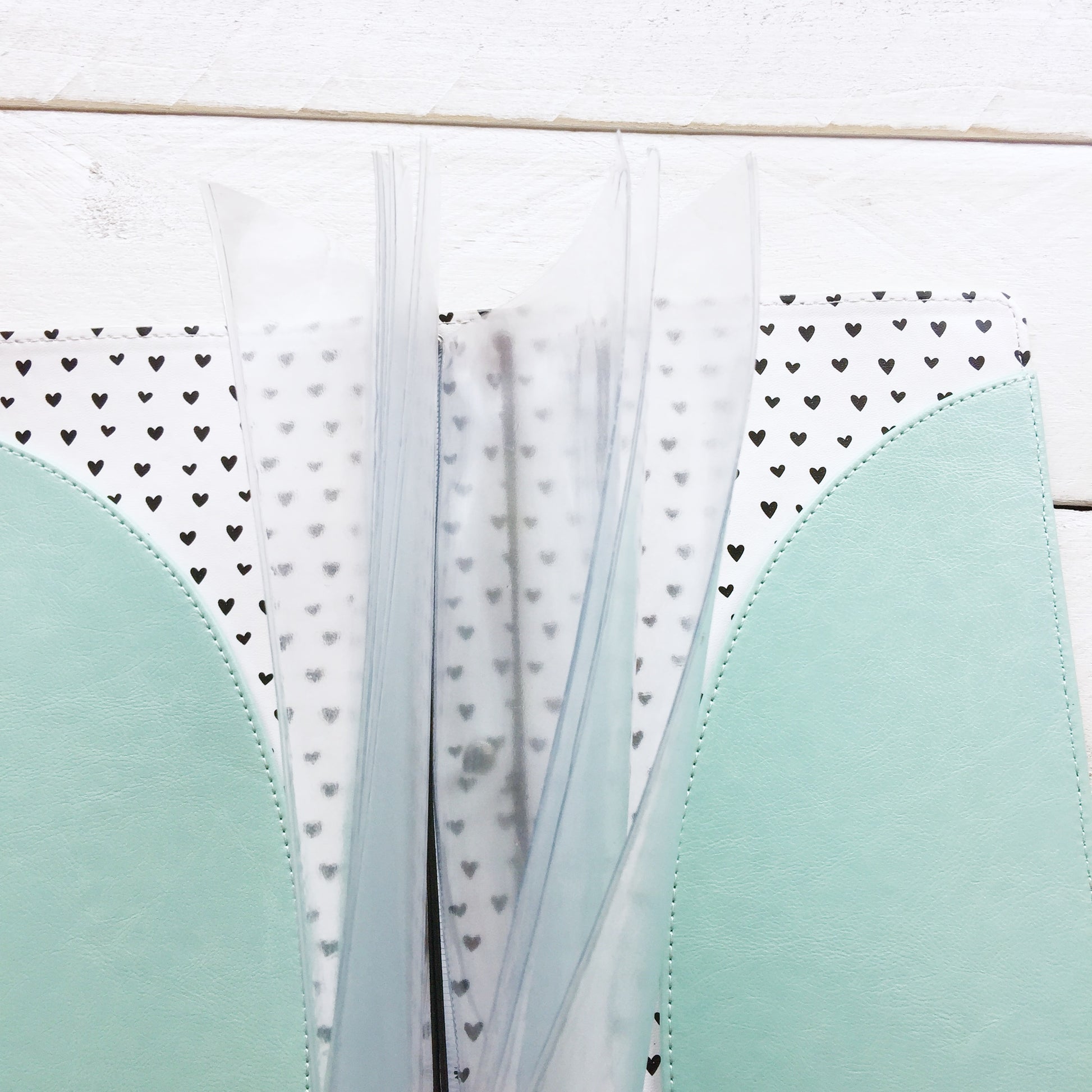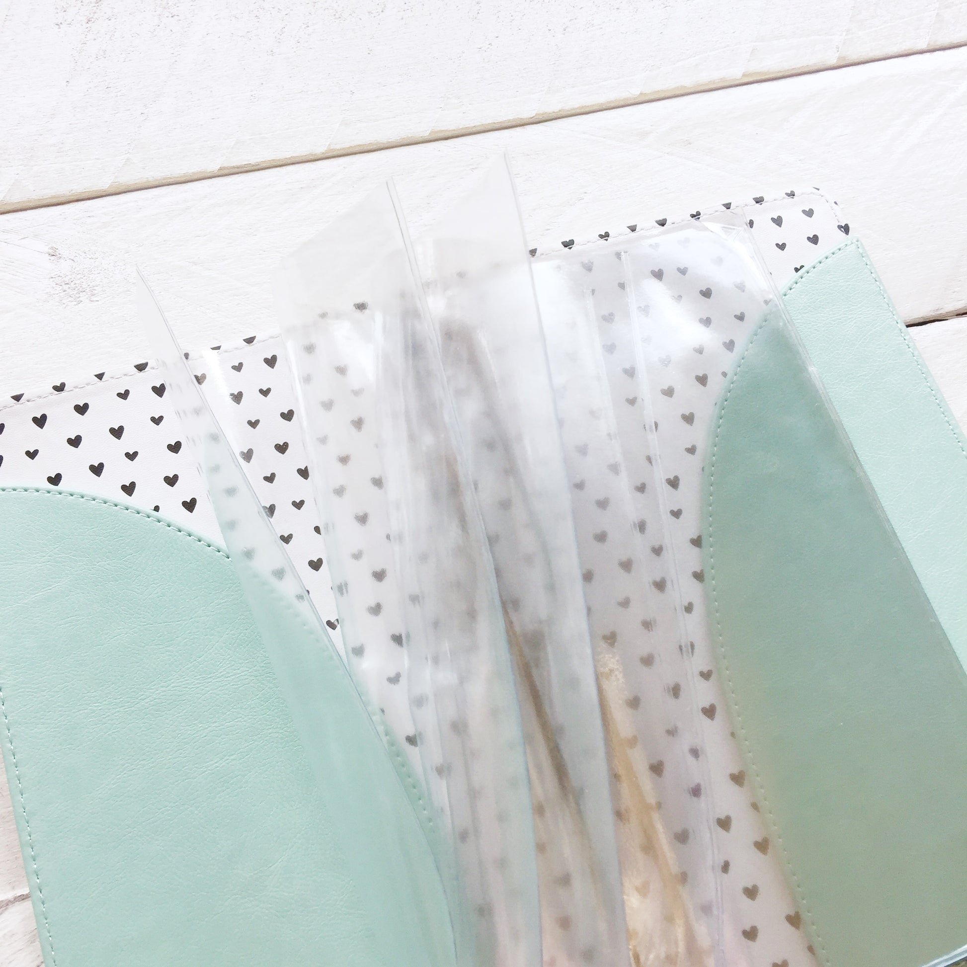The book has a heat seal center and is easy to slip behind the elastics of your TN. Each page is open at the top, ready for you to slide your creations inside.