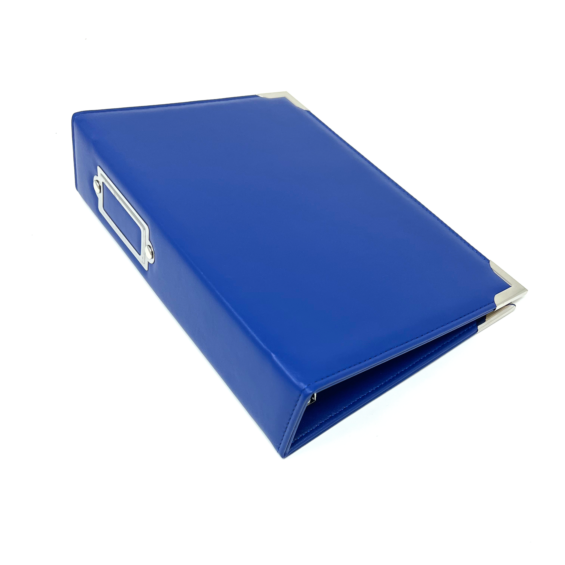 Includes 4 inner metal rings, metal corner protectors, and a metal label base on the spine. Material is a PU leather (vegan and animal friendly).